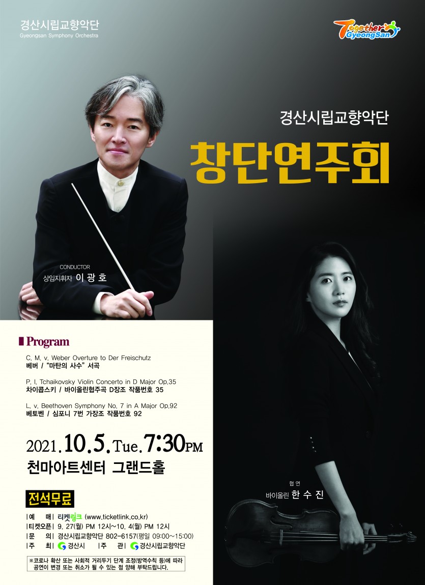 경산시립교향악단 창단연주회가 오는 10월 5일 영남대학교 천마아트센터 그랜드홀에서 전석 무료로 진행된다.
