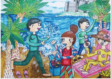 전시 주제는 “내가 가장 행복한 순간”으로 가족과 함께 여행하는 모습, 여름에 시원한 수박을 먹는 모습, 나의 생일날, 좋아하는 책을 읽는 모습 등 아이들의 가장 행복한 순간들이 아이들만의 순수함과 상상력이 더해져 다양한 모습으로 표현됐다.