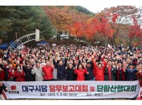국민의힘 대구광역시당(위원장 이인선 국회의원)은 8일 팔공산 동화사 입구 운동장에서 ‘2025 국민의힘 대구시당 당무보고대회 및 단합산행대회’를 개최했다.행사에는 이인선 대구시당위원장, 윤재옥 국회의원, 김상훈 국회의원, 강대식 국회의원, 김승수 국회의원, 김기웅 국회의원, 최은석 국회의원, 우재준 국회의원, 광역⋅기초의원, 시당 및 당협 주요당직자 등 1000여명이 참석했다.당무보고대회를 통해 2025년 당과 지역사회 발전을 위해 노력하신 우수당원들에게 표창장을 수여하고, 민족의 정기가 서려 있는 팔공산 산행대회를 통해서 당원 화…