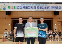 19개 시·군 500여 명 참여 문경시 우승, 고향사랑기부금 100만 원 기탁경북 19개 시·군 공무원들이 참여한 제13회 경북도지사기 공무원 배드민턴대회가 지난 5일부터 6일까지 예천국민체육센터에서 성황리에 열렸다.경북도 공무원 배드민턴클럽(회장 김재원)이 주최하고 예천군청 공무원 배드민턴클럽(회장 김도윤)이 주관한 이번 대회에는 선수와 관계자 500여 명이 참가했다.대회 첫날인 5일에는 지역사회 복지시설 봉사활동, 전통시장 장보기 행사, 친선경기가 진행됐으며, 6일에는 예선전과 결승전, 폐회식을 끝으로 막을 내렸다.특히 예천군청…