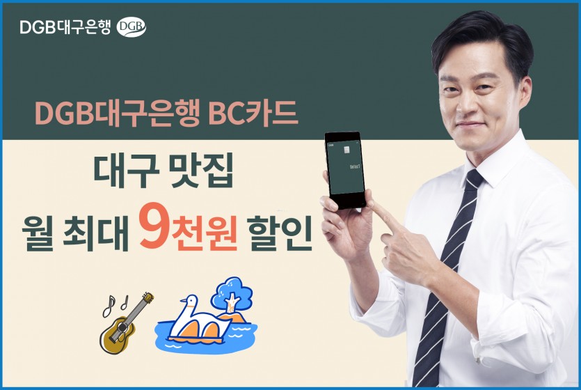 DGB대구은행은 코로나19로 침체된 지역 소상공인을 돕고, 방학 – 휴가 시즌 늘어난 외식 소비자 편의를 위해 DGB대구은행 BC카드 단독으로 월 최대 9천원 할인을 받을 수 있는‘대구 맛집 할인 이벤트’를 실시한다고 밝혔다.